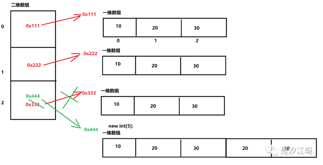 二维数组中的元素存储的是一维数组。