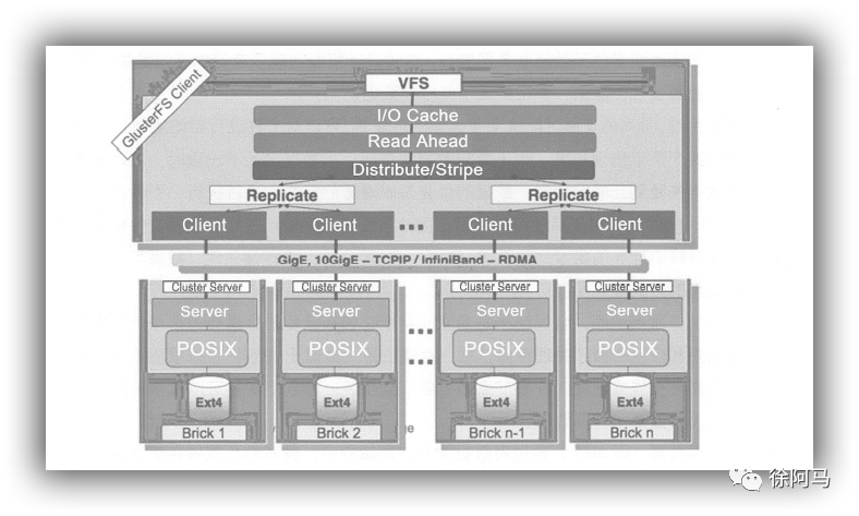 如图所示是GlusterFS数据访问的一个概要图。
