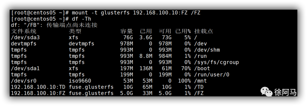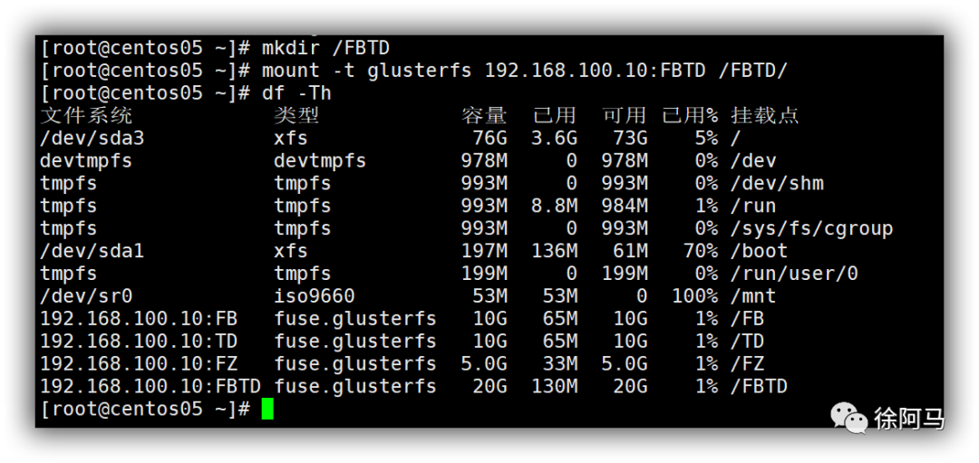 | centos04 | 192.168.100.40 | /dev/sdb1(5G) /dev/sdb2(5G) /dev/sdb3(5G) /dev/sdb4(5G) | /sdb1 /sdb2 /sdb3 /sdb4 |