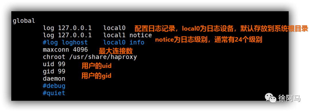这两行配置放到Haproxy的global 配置项目中,主要是将Haproxy的info及notice日志分别记录到不同的日志文件中。