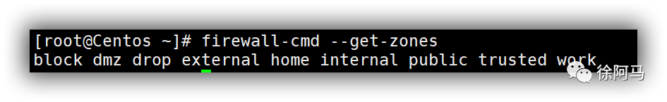 firewal-cmd 预定义信息主要包括三种:可用的区域、可用的服务以及可用的ICMP阻塞类型.