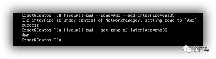 连接服务器网卡ens35地址为192.168.2.1.分配到firewall的dmz(非军事)区域。