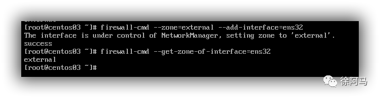 external(外部区域):除非与传出流量相关,或与ssh预定义服务匹配,否则拒绝流量传入。通过此区域转发的IPv4传出流量将进行地址伪装,可用于为路由器启用了伪装功能的外部网络。