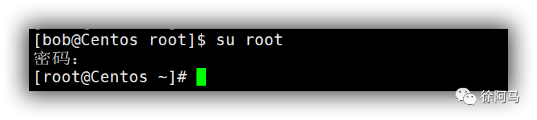 使用su命令,可以切换为指定的另一个用户,从而具有该用户的所有权限。当然,切换时需要对目标用户的密码进行验证(从root用户切换为其他用户时除外)。例如,当前登录的用户为bob