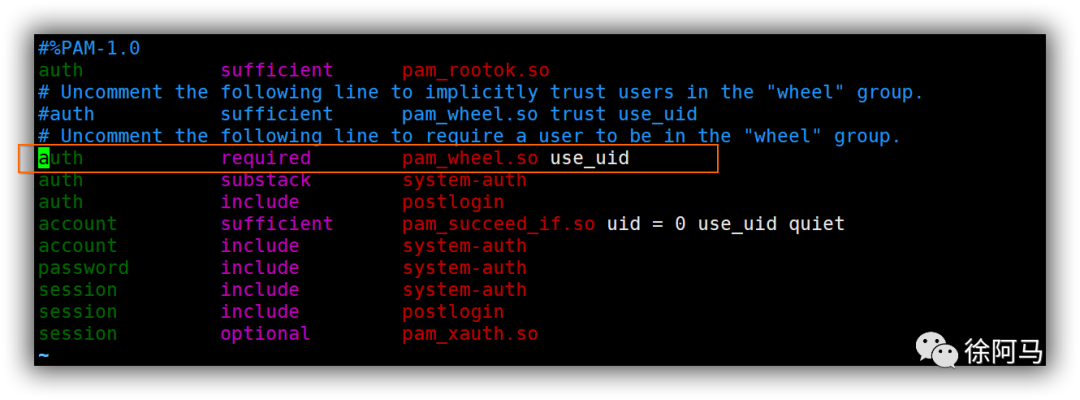 /etc/pam.d/su 认证配置以启用pam_wheel认证。