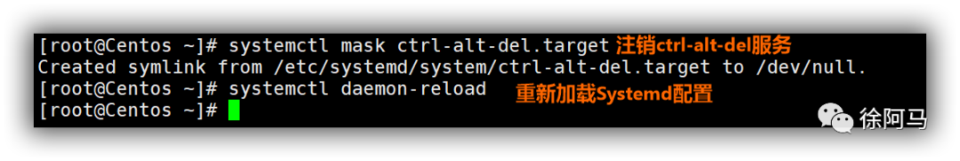在不影响reboot.target文件的前提下执行以下命令即可禁用Ctrl+Alt+Del快捷键功能。