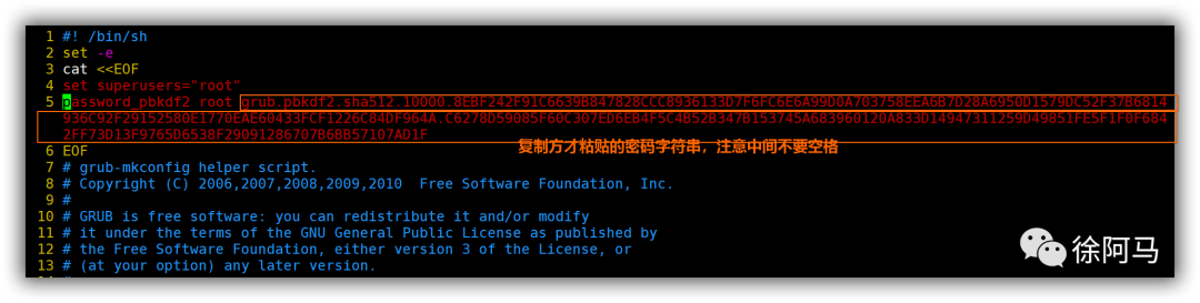 为GRUB设置密码时,“grub.pbkdf2.sha512…”部分可替换为明文的密码字符串,如“123456”,但安全性稍差。不建议使用明文的密码字符串。