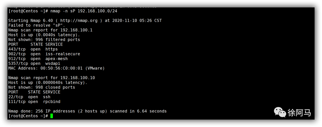 快速检测192.168.100.0/24网段中有哪些存活主机(能ping通)