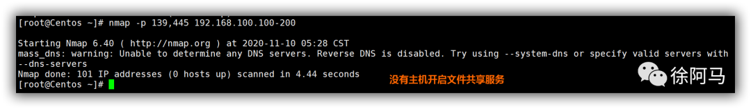 检测IP地址位于192.168.4.100~200的主机是否开启文件共享服务。
