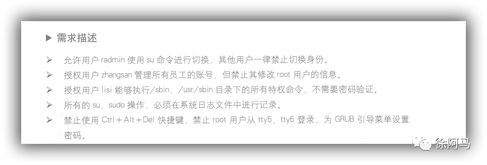 允许用户radmin使用su命令进行切换,其他用户一律禁止切换身份。