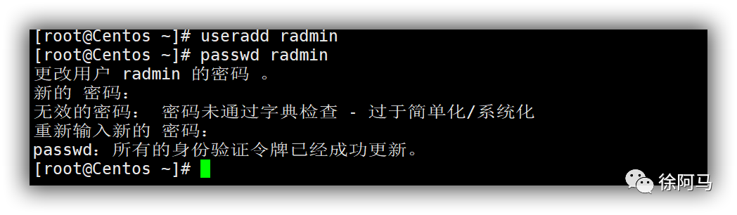 1. 创建radmin,设置密码为pwd@123