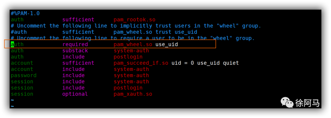 2.配置pam验证,支持wheel组使用su命令