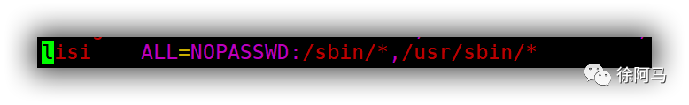 授权用户lisi能够执行/sbin、/usr/sbin目录下的所有特权命令,不需要密码验证。