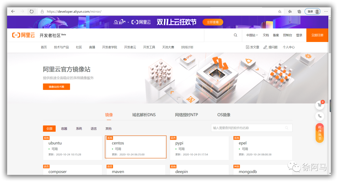 阿里镜像官方地址:http://mirrors.aliyun.com/