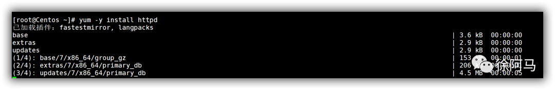 5,测试安装apache服务是否能够使用(因为是网络源,所以安装可能较慢,耐心等待即可)
