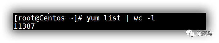 直接执行“yum list”命令可以获得系统中的软件安装情况,也可以查询软件仓库中可用的软件包列表,其中子命令list表示列表查看。结合wc -l 查询软件包个数。