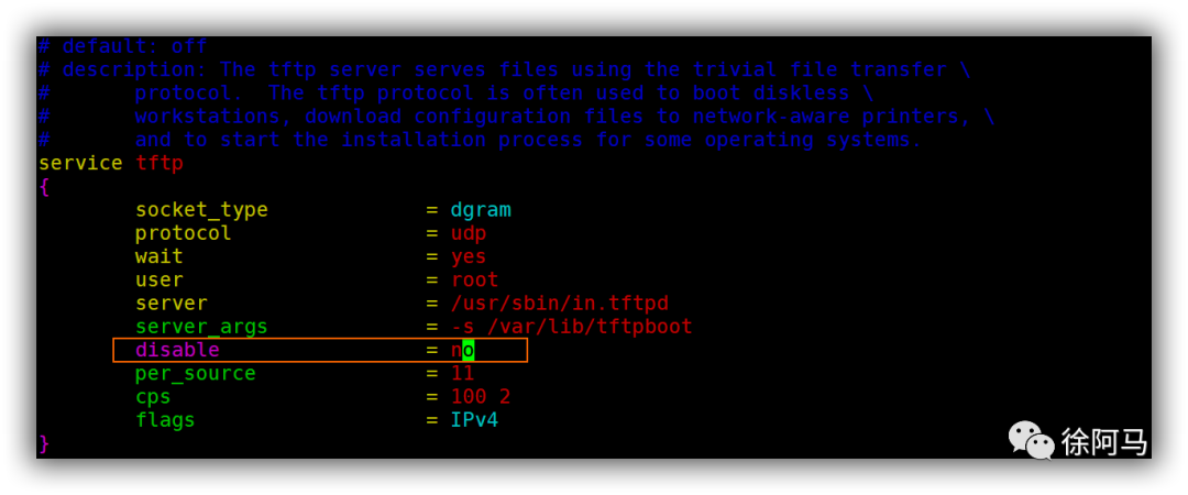 5.进入tftp主配置文件,设置为启动tftp服务