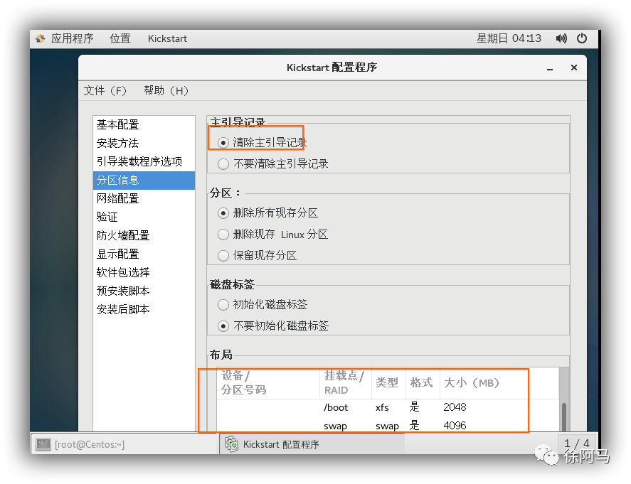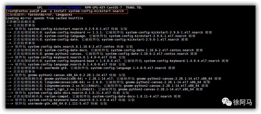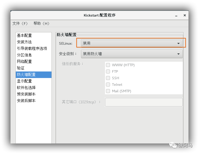 CentOS7系统开始不再提供软件包的选择。如果需要安装软件包,可以根据需要将/root/anaconda-ks.cfg的软件包安装脚本复制到ks.cfg文件中,只需要复制%packages到%end部分即可,在%packages到%end之间,包含以@开头的软件包列表,将不需要的软件名删除,剩下的就是系统会自动安装的软件包。