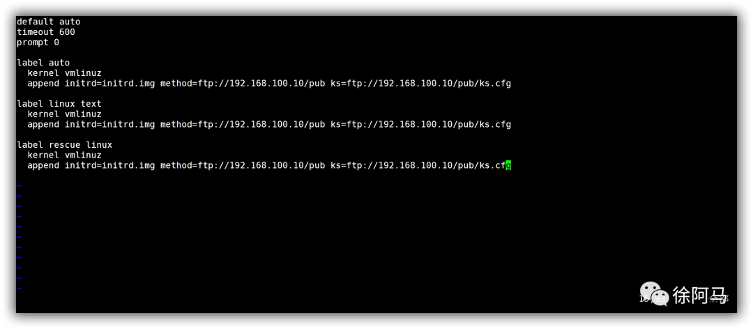 有了自动安装的应答文件之后,只要将其放置PXE安装服务器的FTP目录下,并适当修改引导菜单,就可以实现基于网络的批量自动装机了。