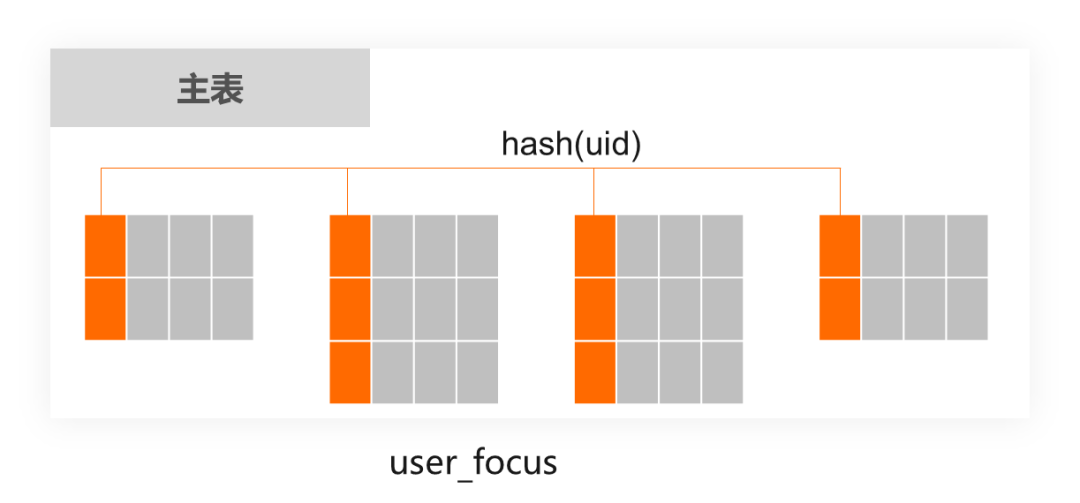 create table user_focus(id bigint primary key,uid bigint, -- 用户IDfocus_uid bigint, -- 关注的用户IDextra varchar(1024), -- 其他业务属性index idx_focus_uid(focus_uid),index idx_uid(uid)) partition by hash(uid);