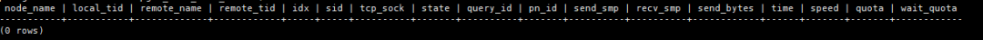 该视图展示所有DN上的通信库接收流状态。其中字段包括节点名称、使用此通信流的线程ID、连接对端节点名称、连接对端节点ID、通信对端DN在本DN内的标识编号、通信流在物理连接中的标识编号、通信流所使用的tpc通信socket、通信流当前的状态、通信流对应的debug_query_id编号、通信流所执行查询的plan_node_id编号、通信流所执行查询send端的smpid编号、通信流所执行查询recv端的smpid编号、通信流接收的数据总量、通信流当前生命周期使用时长、通信流的平均接收速率、通信流当前的通信配额值、通信流当前缓存的数据大小。
