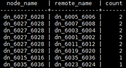 在CN上查询当前任意两个DN之间的stream情况:select node_name, remote_name, count(*) as stream from pgxc_comm_send_stream group by 1, 2 order by 3 desc limit 30;