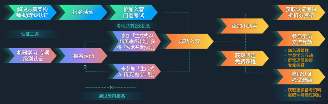 报名过审后即可成功入营,学课完成后将有机会领取认证考试券,共 150 张考试券先到先得