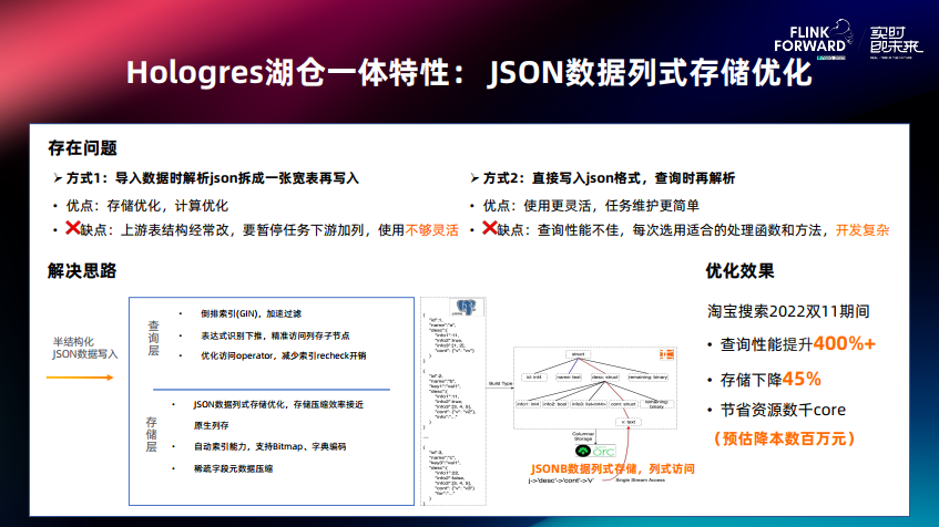 Hologres JSON 数据列式存储优化方案可以同时解决入库方便,满足压缩存储、高性能计算需求,方案具体为:
