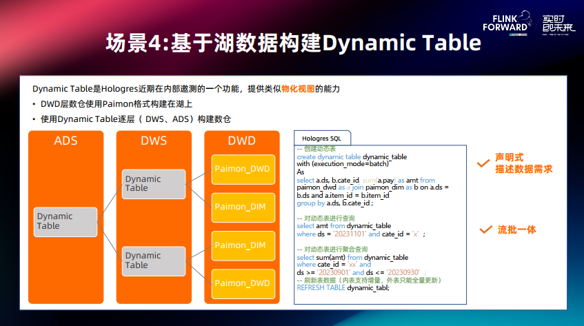 第四个场景为基于湖数据构建 Dynamic Table