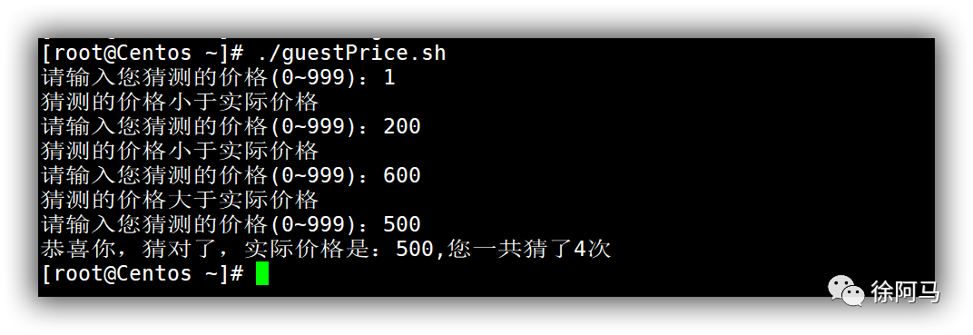 案例要求如下:由脚本预先生成一个随机的价格数目(0~999)作为实际价格,判断用户猜测的价格是否高出或低于实际价格,给出相应提示后再次要求用户猜测,一直到用户猜中实际价格为止,输出用户共猜测的次数、实际价格。
