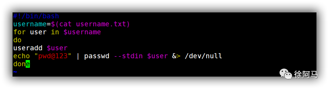 创建useraddfor.sh脚本,进行编辑