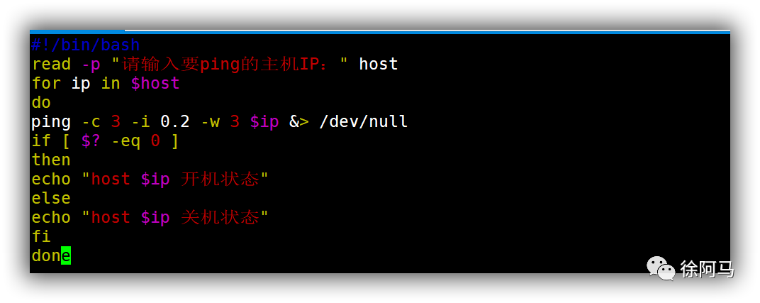 上述脚本代码中,do…done循环体内嵌套使用了if条件选择语句,用来针对不同P地址的测试结果进行判断,并输出相应的提示信息。嵌套可以理解为镶嵌、套用,就是在已有的语句、函数中在多加一个或多个语句、函数等。实际上,if语句,for 语句及其他各种Shell脚本语句都是可以嵌套使用的,后续课程中将不再重复说明。