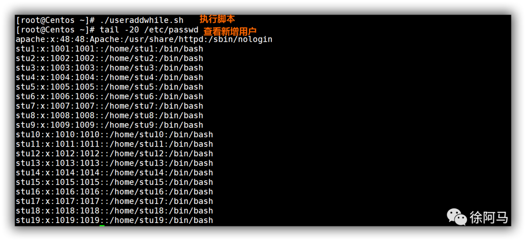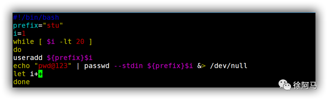 在一些技术培训和学习领域,出于实验或测试的目的,需要批量添加用户账号,这些用户的名称中包含固定的前缀字串,并按照数字顺序依次进行编号,账号的数量往往也是固定的。例如,若要添加20个用户,名称依次为stu1、stu2、……stu20,可以参考以下操作。