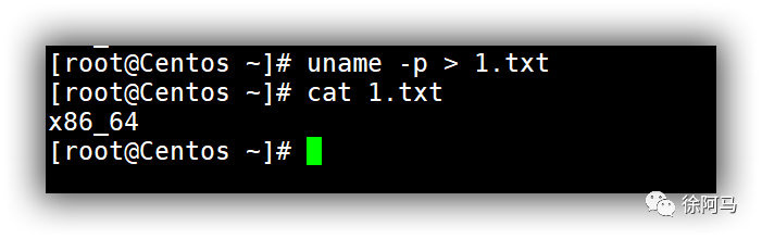 若重定向输出的目标文件不存在,则会新建该文件,然后将前面命令的输出结果保存到该文件中;若目标文件已经存在,则将输出结果覆盖或追加到文件中。例如,若要将当前主机的CPU类型信息(uname-p)保存到1.txt文件中,而不是直接显示在屏幕上,可以执行以下操作。