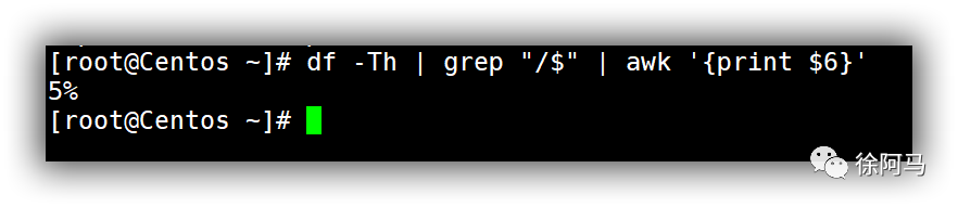 又如,若要提取根分区(/)的磁盘使用率信息,可以执行以下操作,其中用到了df、grep.awk命令和管道操作。