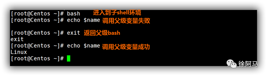 将无法引用父级Shell环境中定义的name等变量。