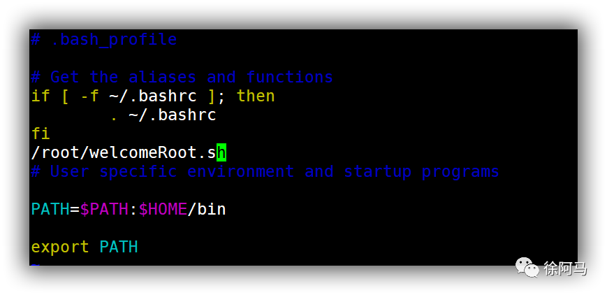 3)修改/root/.bash_profile 每次登陆时加载/root/welcomeroot.sh脚本