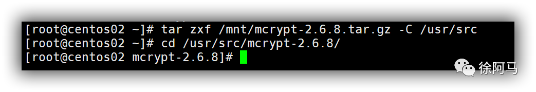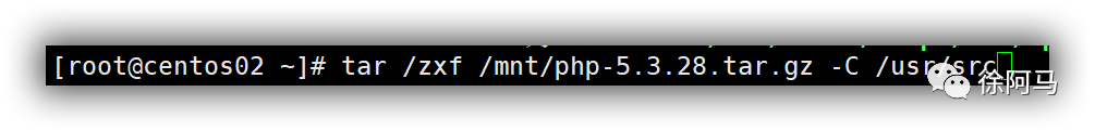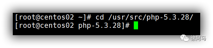 将下载获得的PHP源码包解压并释放到/usr/src目录下,切换到展开后的源码目录。