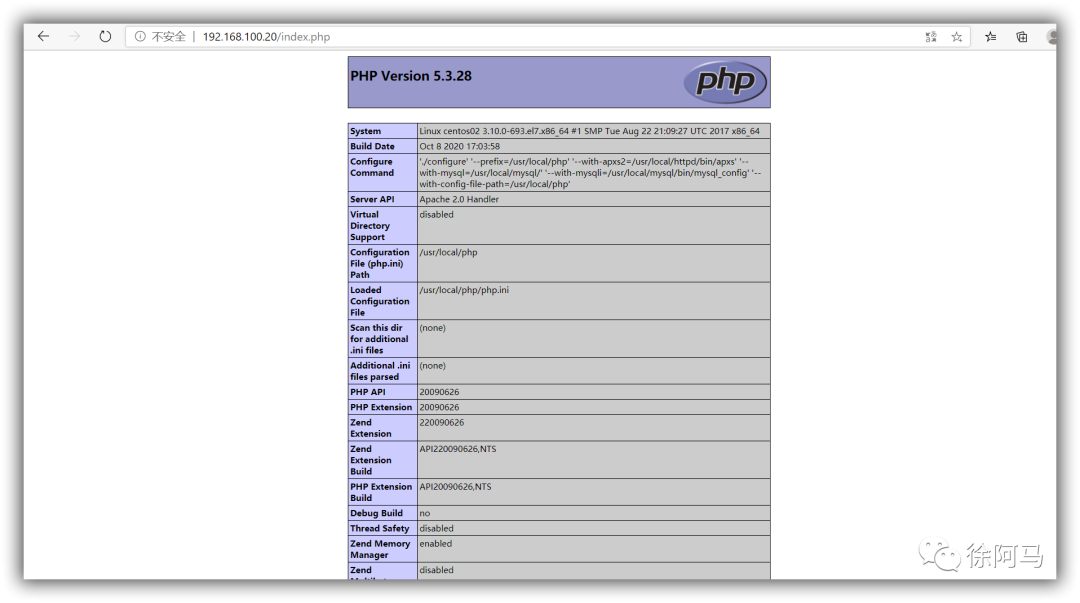 完成PHP相关软件的安装、调整配置以后,应对其进行必要的功能测试,以验证LANMP平台各组件是否能够协同运作。在网站根目录下创建相应的PHP测试网页,然后通过浏览器进行访问,根据显示结果即可判断LAVMP平台是否构建成功。