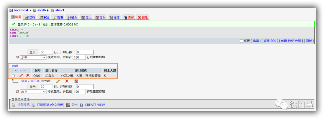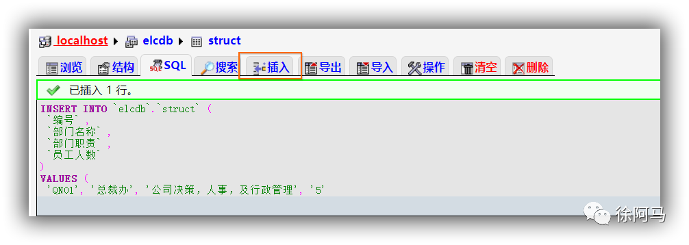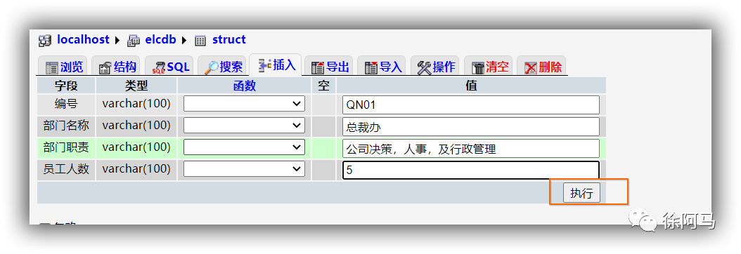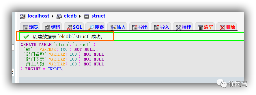 3.打开elcdb库,并在其中新建 struct表(表5-1),录入相关数据。