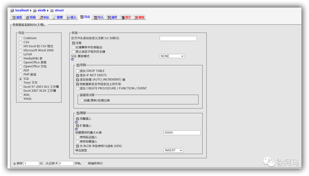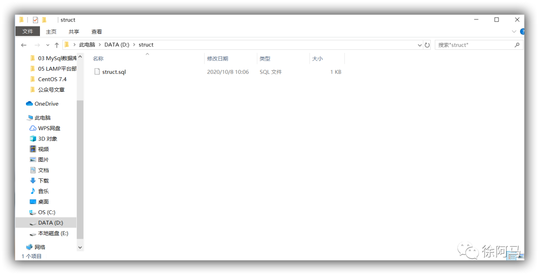 2)导出SQL脚本文件,保存在D:\struct.sql文件中