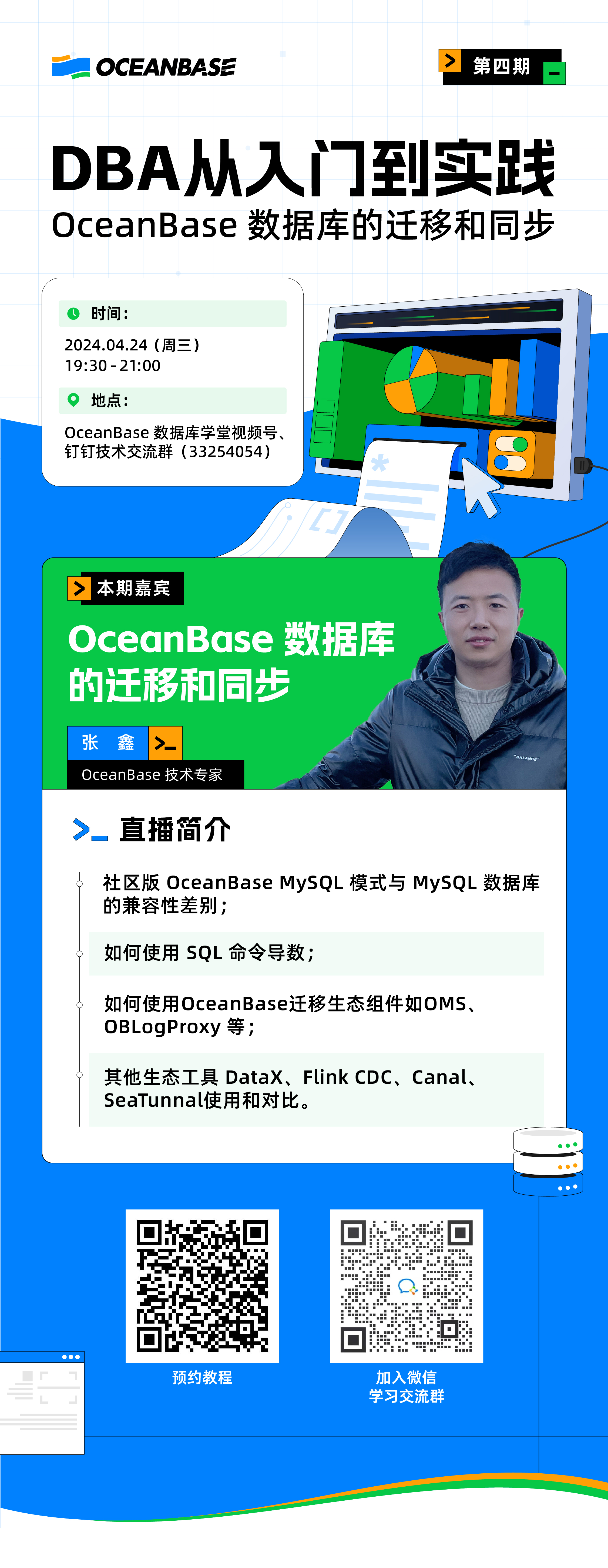 更多精彩内容请锁定4月24日《DBA从入门到实践》第四期,扫描下方海报二维码预约教程直播吧~