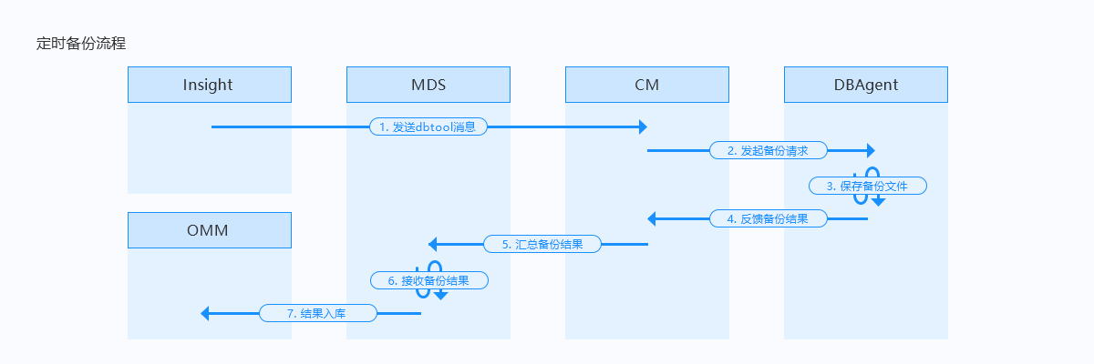 1)insight页面创建定时备份任务到backup_restore库,向CM发送dbtool消息