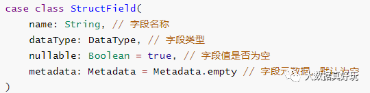 StructField 定义,同样是一个样例类,有四个属性,其中字段名称和类型为必填