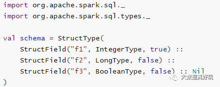 Schema信息封装在StructType中,包含很多StructField对象,源码。