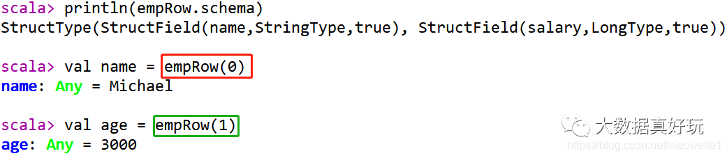 方式一:下标获取,从0开始,类似数组下标获取如何获取Row中每个字段的值呢?
