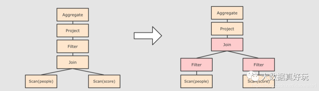 谓词下推 Predicate Pushdown, 将 Filter 这种可以减小数据集的操作下推, 放在 Scan 的位置, 这样可以减少操作时候的数据量。