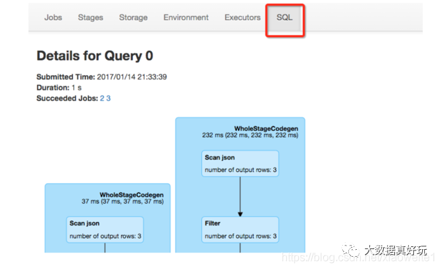 使得Spark SQL得以洞察更多的结构信息,从而对藏于DataFrame背后的数据源以及作用于DataFrame之上的变换进行针对性的优化,最终达到大幅提升运行时效率。反观RDD,由于无从得知所存数据元素的具体内部结构,Spark Core只能在stage层面进行简单、通用的流水线优化。