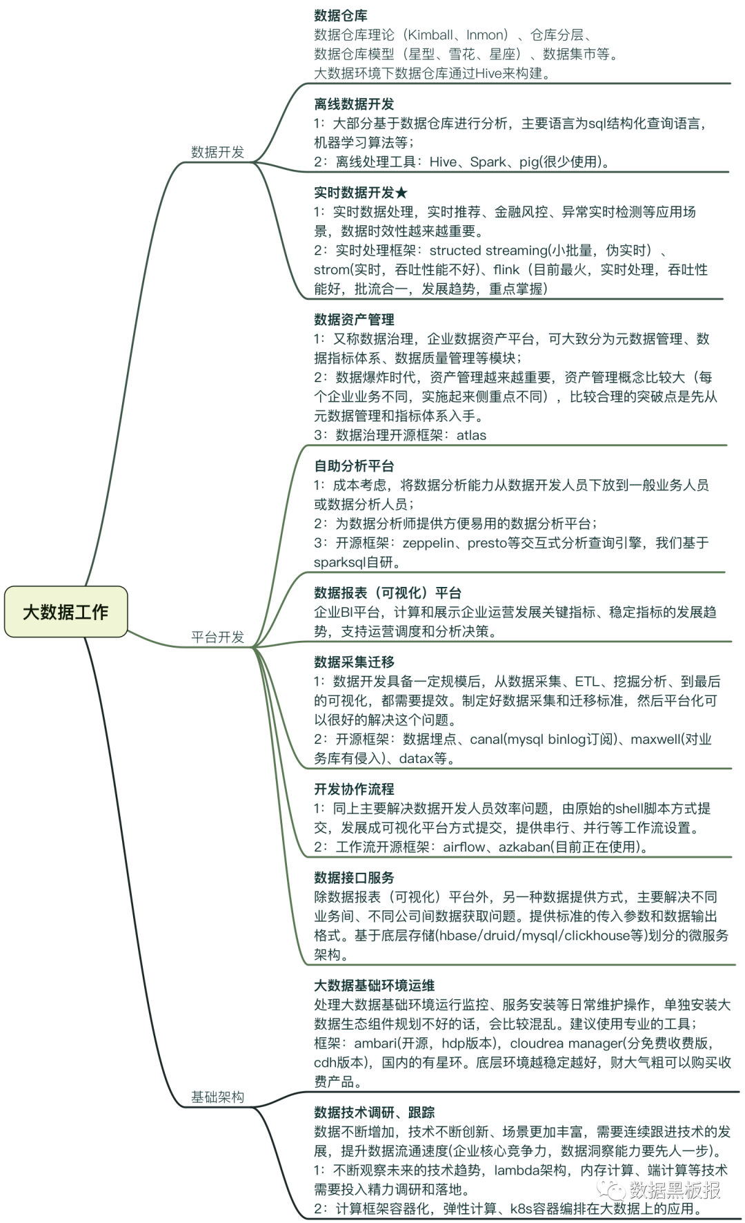 数据仓库是干什么的?我们先从全局视角☞大数据职业发展方向看一下,如图: