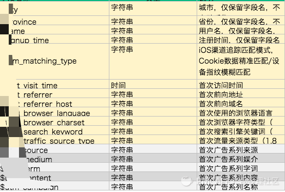 用户表,顾名思义是记录用户信息、用户属性的表,通过用户的唯一标识(user_id)能够将事件表和用户表两张表进行关联。事件与用户实现关联,事件表里一条条的数据记录,就不会再是孤立的统计数字,而是能够与具体的用户产生关联进行分析,或者用行为来圈定用户,给用户设定分群和标签。用户表的自定义维度设计与业务关联度最高,除了常规的用户id、用户昵称、注册时间、首次登陆APP时间等字段外,其他偏业务属性字段需要一个比较全局的视角,不仅要与数据运营方沟通,而是要与公司每一个有分析诉求的部门进行沟通,采集他们的数据分析诉求,来提炼抽象出比较通用的用户表。如上面提到的,如果只是从事件表里把上报的数据聚合成统计数字或者图标,是没有很大意义的,还要能够下钻进行分析。事件表中变量字段的设计是为了从事件反映的用户行为侧进行下钻,而用户表的属性字段则是基于从产生行为的用户本身进行下钻。举简单一例:当日商品详情页的总浏览数据是上升的,但是总GMV确没有明显提高,从事件侧分析,发现某类异业合作主推的单品商详页浏览数据上升,其他品类商详页没有明确上升;从用户侧分析,该类单品新增流量主要来自于渠道A。从此得出的初步判断是:1)单本对渠道A的用户拉新效果明显;2)但是该类用户被吸引来了,却没有下单,很奇怪,需要确认投放落地页与站内商品信息是否一致,尤其是价格;3)该类用户对平台其他商品的兴趣不高。说回用户表的属性字段设计,回到那句核心:采集共性诉求,提炼出通用、容易理解的用户表。这个工作其实并不难,考验的是数据PM沟通、提炼真实诉求,并整合成具体的需求的能力。以我司做内容服务的平台举例,用户属性表如下,基本覆盖了通用的用户群的分析: